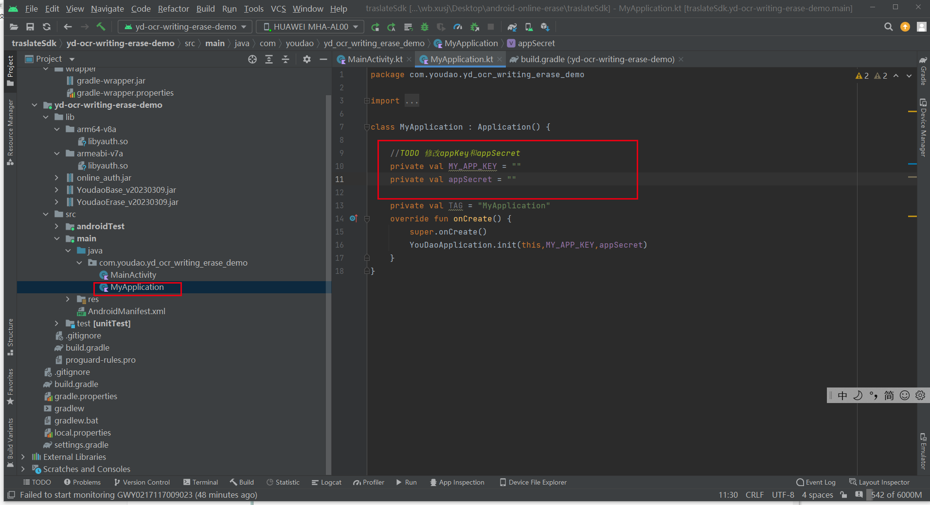 YouDaoApplication.init(this,MY_APP_KEY,appSecret)